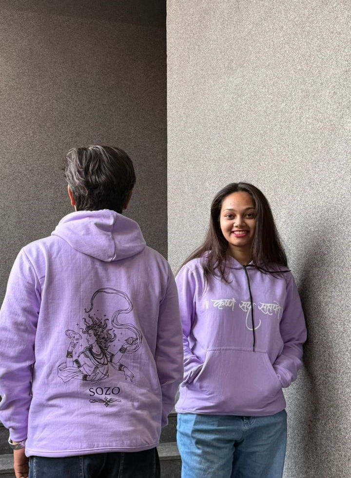 The Shree Krishna Hoodie by Thesozo merges spiritual identity with premium streetwear. Finished in a soft lavender tone, it features a detailed Shree Krishna print with the devotional text “Krishna Sada Sahayate,” creating a bold yet meaningful look. Made from a premium 80% cotton and 20% PC blend with 320 GSM fabric, this hoodie delivers superior comfort, warmth, and durability—perfect for everyday wear with a statement edge.
